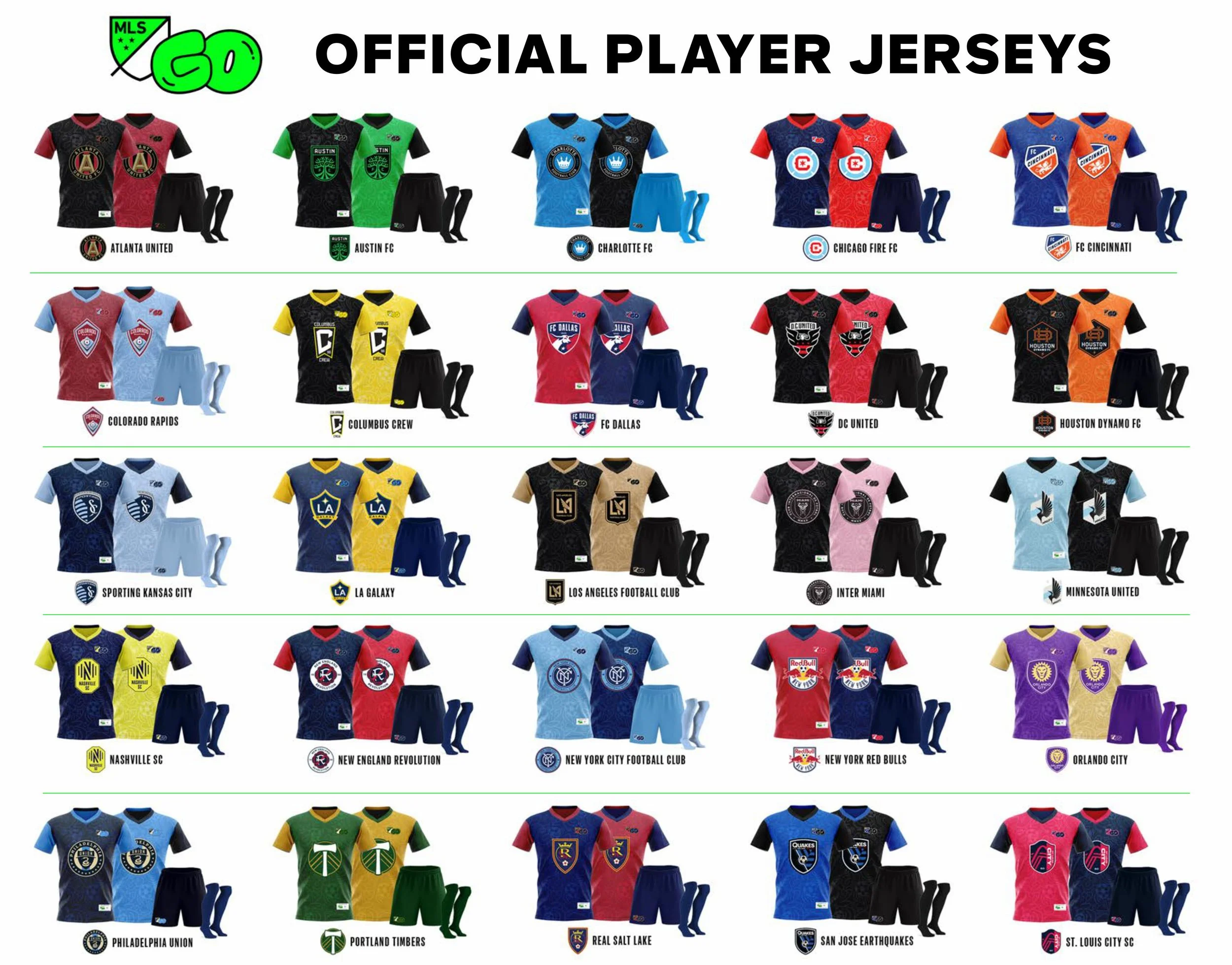 Each participant will receive a full MLS GO uniform kit that utilizes MLS team logos and colors. The uniform kit includes a MLS GO reversible jersey, MLS GO shorts, and socks.